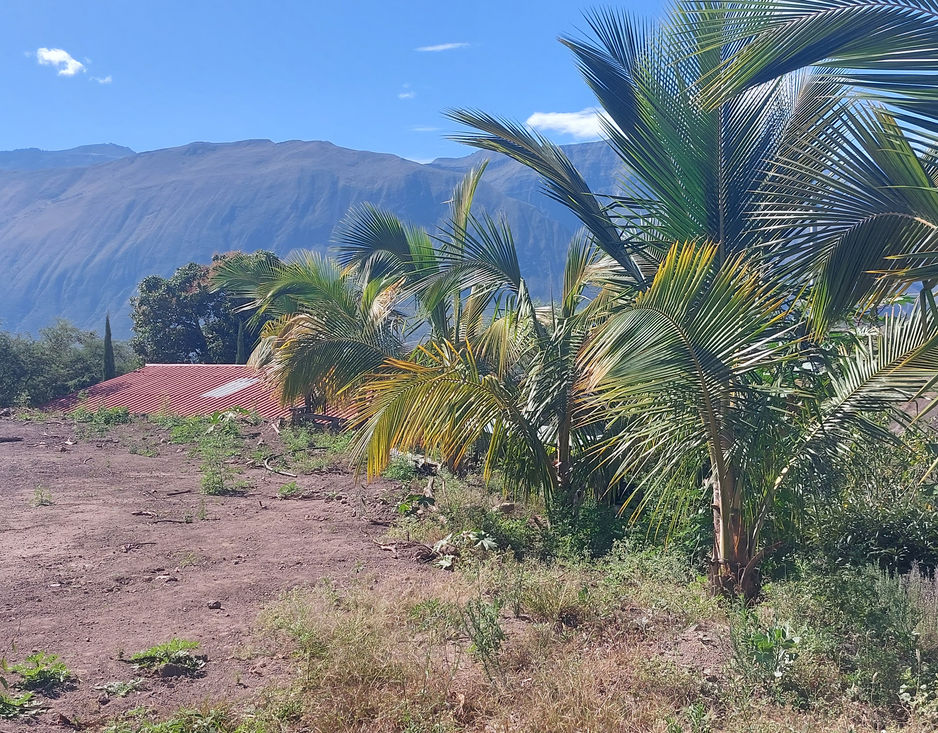 La propiedad consta de 4 terrazas, en una de ellas se emplaza una casa de una sola planta, rodeada de árboles frutales y ornamentales.